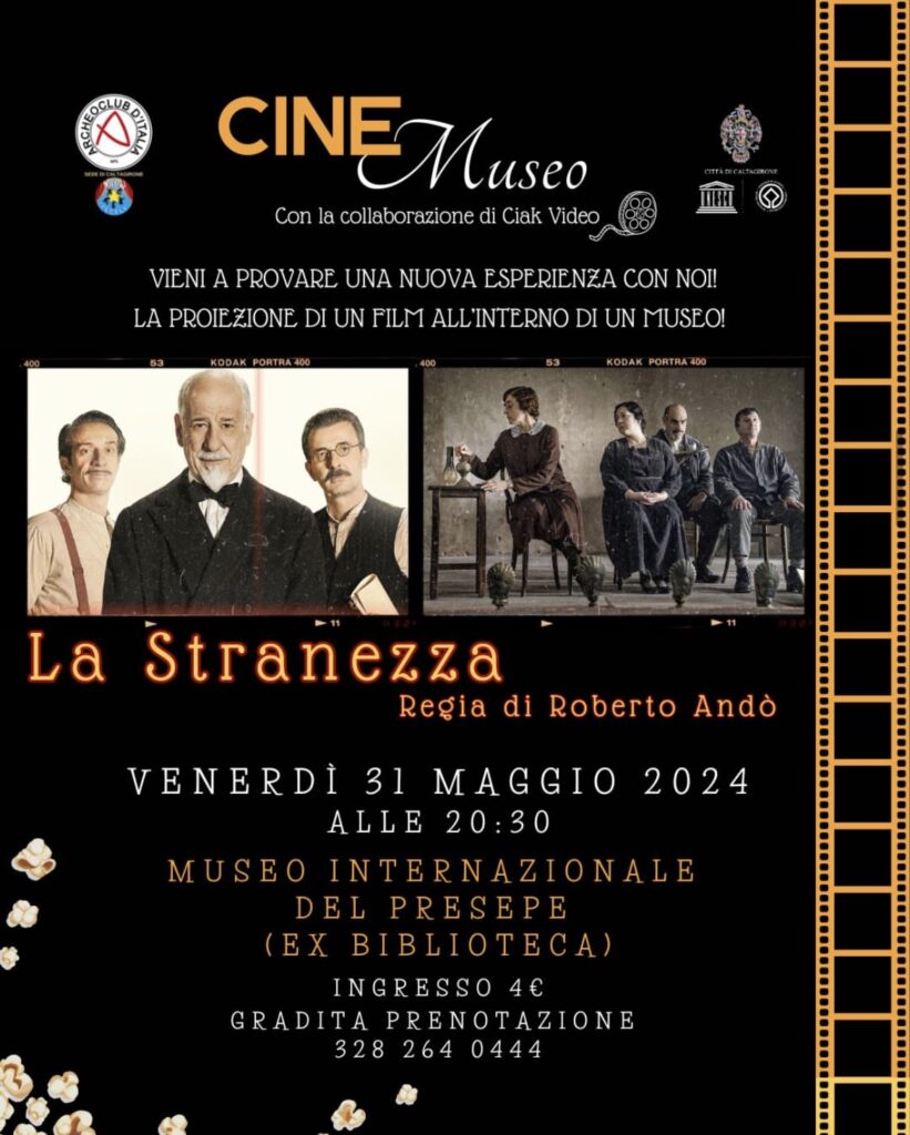 Proiezione cinematografica del film “La stranezza” presso il Museo Internazionale del Presepe di Caltagirone, nell’ambito di un’iniziativa di valorizzazione degli spazi museali attraverso il linguaggio della settima arte. Attività finalizzata alla promozione culturale e all’incontro tra cinema e patrimonio locale, con partecipazione a numero limitato e accesso su prenotazione.